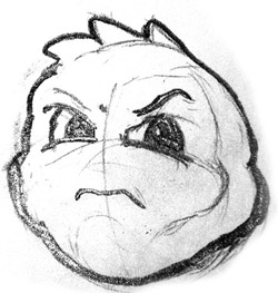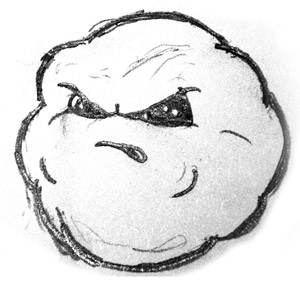 He’s a bit bigger in size and he’s also a got an attitude. In the initial sketches I gave him a little edge—raised eyebrow, spikey ‘fluff’ hair, a scowl. This all would later turn into a little crazier come the illustration phase. He gets an evil smirk on his face and he means business. His blue headband shows his dedication to hitting the gym. He keeps his reflexes sharp and his arms in shape so he can fling lots of snowballs at you. All at once!
